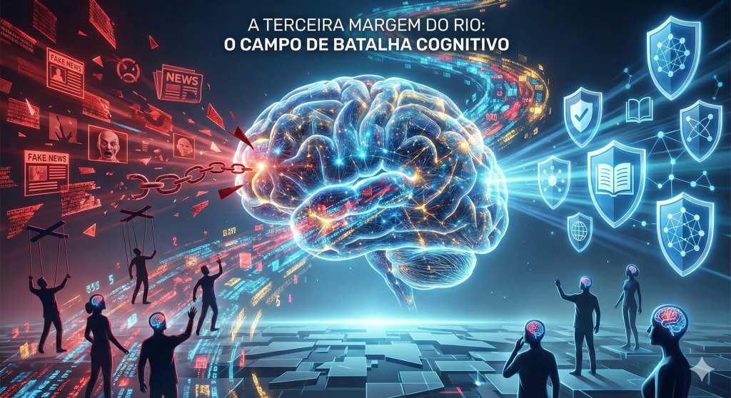 Na literatura imortal de Guimarães Rosa, a “terceira margem” do rio representa o espaço do imponderável, o lugar que desafia a geografia física e a lógica cartesiana. Contudo, ao transportarmos essa metáfora para a realidade da Segurança Pública e da Defesa no século XXI, a terceira margem deixa de ser uma abstração poética para se tornar o teatro de operações mais letal da atualidade: o domínio cognitivo.